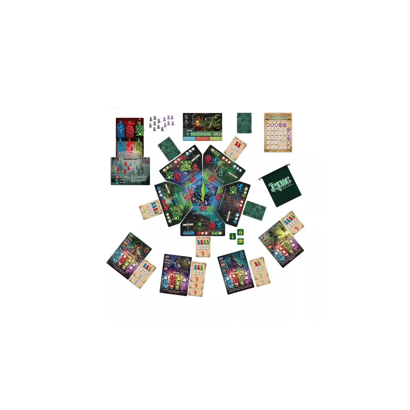 Les joueurs incarnent des personnages uniques résidant dans une ville insulaire froide et oubliée au large des côtes de New Arkhamore dans les années 1920. Cependant, tout ne va pas pour le mieux dans cette ville apparemment paisible. Des horreurs cosmiques émergent de l’épais brouillard marin, plongeant la ville autrefois endormie dans un état de chaos. Au fur et à mesure que les joueurs naviguent dans le jeu, ils doivent travailler ensemble pour traduire le Necronomicon, dévoiler le Grand Ancien et sceller les portails pour bannir l'horreur imminente dans le royaume cosmique. Pour y parvenir, les joueurs doivent exploiter la folie qui entoure la ville, l'utiliser pour traduire des pages, lutter contre les shamblers et empêcher les lieux de succomber à l'horreur pure. Le point de la folie offre aux joueurs des avantages tels que plus de mouvement, des attaques plus puissantes et une intelligence cosmique. Cependant, ils doivent faire attention à ne pas pousser leur esprit trop loin, car la frontière entre la raison et la folie est délicate. Dans ce jeu, la folie est une ressource précieuse qui peut être utilisée pour traduire des pages et améliorer les capacités du joueur, mais elle est excessive. la folie peut conduire à la défaite. La pression pour sauver la ville se fait sentir dès le premier tour !Tiny Epic Cthulhu offre une expérience de jeu tendue et engageante, avec des mécanismes innovants de construction de sacs et de poussée de votre chance. Il comprend un composant surprenant : une toupie ! - qui capture parfaitement l'essence de la folie et du chaos lovecraftiens, tout en conservant les éléments stratégiques que les joueurs attendent de la série Tiny Epic. Chaque joueur devra utiliser ses pouvoirs spéciaux, utiliser les actions uniques disponibles dans la ville et gérer soigneusement sa propre folie. Avec sa boîte compacte et ses règles faciles à comprendre, Tiny Epic Cthulhu propose des décisions significatives et des stratégies à plusieurs niveaux qui captiveront les joueurs. Il s'agit d'un ajout passionnant à la série Tiny Epic, offrant une expérience de jeu passionnante et immersive.