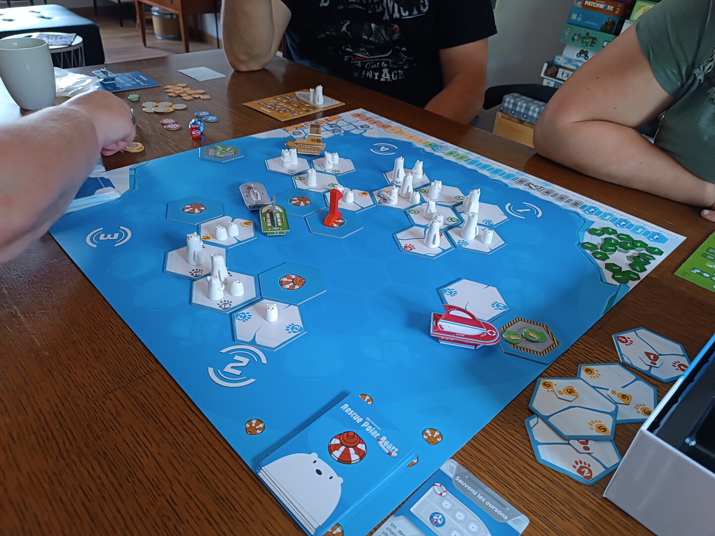Rescue Polar Bears, Sauvez les ours du réchauffement climatique. L'utilisation des énergies fossiles et les rejets de gaz à effet de serre dans l'atmosphère contribuent au réchauffement climatique. Au pôle Nord, les derniers icebergs sont en train de fondre et les ours polaires sont menacés d'extinction. Les joueurs, membres d'une expédition scientifique, tentent de collecter des données sur le changement climatique afin de convaincre les différents gouvernements mondiaux de la nécessité de changer leur politique environnementale. Dans le même temps, les joueurs doivent aussi empêcher les ours polaires de se noyer dans l'eau glacée. Chaque joueur pilote, sur l'océan Arctique, un bateau de sauvetage possédant des capacités spéciales. Si les joueurs récupèrent collectivement assez de données, ils gagneront ensemble. Par contre, si trop d'ours disparaissent, la défaite sera collective. Les points forts de ce jeu coopératif à la thématique écologique : Des bateaux différents (pouvoirs particuliers qui orientent les façon de jouer de chaque joueur, et on ne joue jamais avec tous les bateaux)Les bateaux évoluent en cours de partie (on débloque des pouvoirs)Une pression qui monte mais sans linéarité (la montée de la température n'est pas fixé, et les tuiles qui doivent fondre sont tirées au hasard)