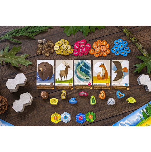 Retrouvez les sensations de Cascadia, jeu de l’année 2022 dans sa version Cascadia Junior !Elle permet aux plus jeunes de s’initier au placement de tuiles, aux objectifs spatialisés et au comptage de points : Construisez votre environnement en y ajoutant de nouvelles tuiles. Récupérez des jetons sur votre diorama en faisant correspondre animaux et paysages. La version avancée incluse imposant des formes à chaque animal, permet de passer aisément à la version familiale de Cascadia. Ajoutez la tuile choisie à votre environnement. Assemblez 3 animaux pour piocher un jeton. Agrandissez vos paysages identiques.